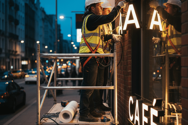 Atraiga todas las miradas, de día y de noche. Nos encargamos del diseño, fabricación e instalación de letreros luminosos y rótulos corpóreos. Desde elegantes letras LED hasta cajas de luz de impacto. Aseguramos un montaje profesional en tu fachada, cumpliendo con los estándares de seguridad y garantizando la máxima visibilidad y presencia de tu negocio.